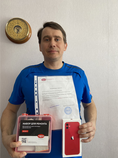 Вячеслав является нашим преданным подписчиком, внимательным, усидчивым и нацеленным на успех. В 2019 году Вячеслав уже участвовал в нашем розыгрыше и выиграл аптечку ТЕСН для ремонта бескамерных колес.