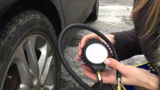 Измерение давления в колесе с помощью карманного манометра ТЕСН -