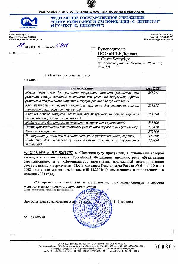 В разделе сертификаты Вы можете увидеть «свежее» письмо из Госстандарта России, действующее до 31 июля 2008 года, на материалы ТECH для шиномонтажа и ремонта колес.
