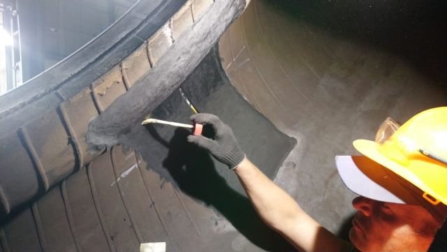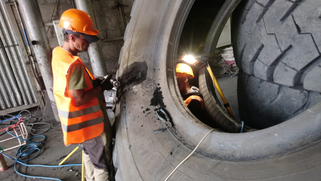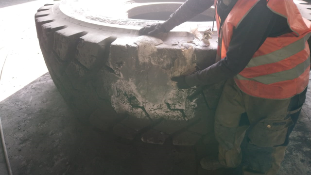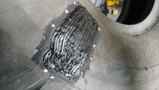 Ремонтом повреждений материалами ТЕСН на крупногабаритных шинах Белазов 7513