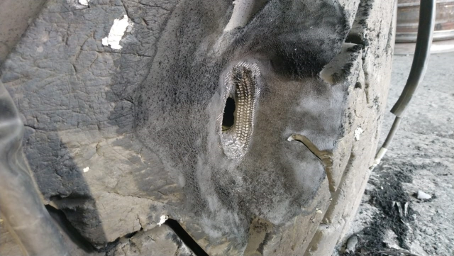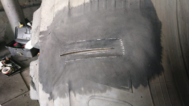 6 повреждений на 6 крупногабаритных шинах Белазов 7513, имеющих грузоподъёмность до 130 тонн.