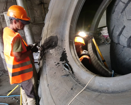 Ремонтом повреждений материалами ТЕСН на крупногабаритных шинах Белазов 7513
