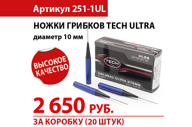 Cпециальная цена на ножки грибков TECH ULTRA 251-1UL (универсальные) с диаметром ножки 10 мм, 20 штук за 2 650 рублей.